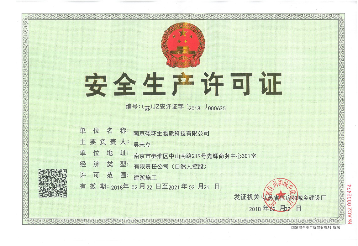 After personnel training and the improvement of the safety production system, our company is honored with the “License of safe producing” issued by Chinese government, Valid from February 22, 2018 to February 21, 2021.