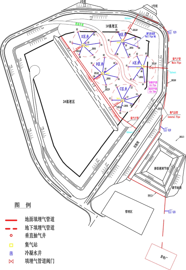 本工程中心擁有垂直豎井、水平橫井、橫豎井結(jié)合等多種技術(shù)方案,可以根據(jù)垃圾填埋場實(shí)際狀況,提出符合實(shí)際情況的氣體收集方案,并實(shí)施包括打井、管道鋪設(shè)與連接在內(nèi)的工程建設(shè)工作。為了確保提高對填埋場內(nèi)部的氣體收集率,本中心還擁有“氣動排水”、“井內(nèi)水位測量”、“垃圾堆體內(nèi)部參數(shù)測量”等專有技術(shù),以保證氣體收集系統(tǒng)的高效運(yùn)行。