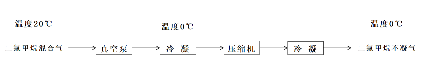 基于以上計(jì)算,將20時(shí)二氯甲烷和空氣的混合氣,壓縮到800KPa(表壓)后,再降到 0,混合氣中只含有2.1%二氯甲烷不凝氣體,約有97.6%的二氯甲烷冷凝析出變?yōu)橐后w溶劑。進(jìn)一步降低溫度,仍有二氯甲烷冷凝析出。